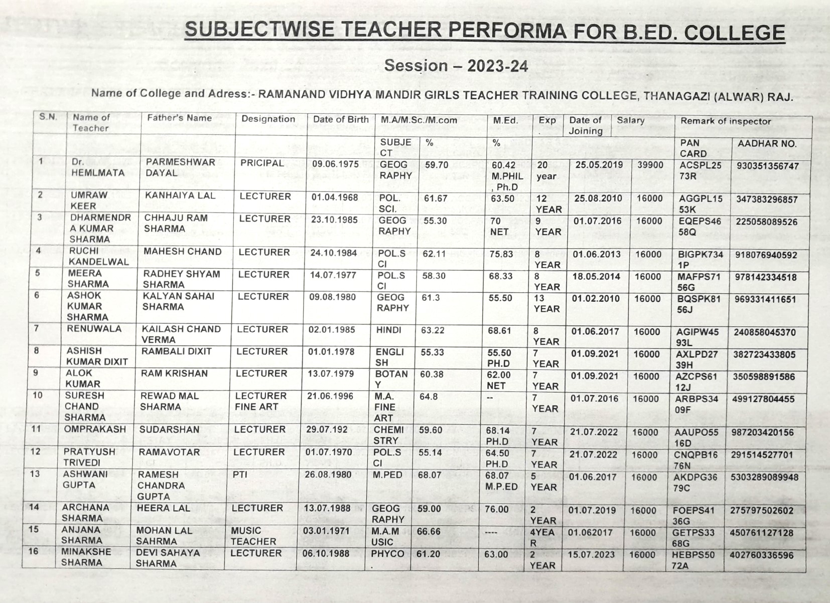Ramanand Vidhya Mandir Girls Teacher Training College committed to excellence seeks to educate its students to become responsible, productive and ethical citizens of the world with the ability to think creatively, reason critically and communicate effectively.